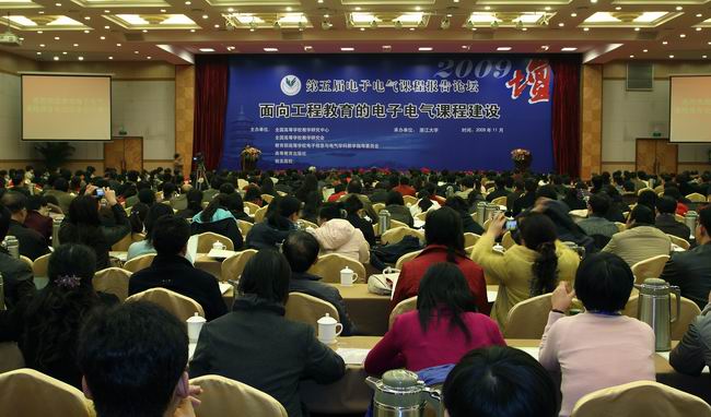 来自全国三百多所高等院校的近七百名相关课程教师汇聚一堂,共议“面向工程教育的电子电气课程建设”的主题。与会代表分别就“电子电气基础课程教学内容与教学方法改革”、“实验、实践教学改革与学科竞赛”、“专业主干课、系列课、课程群改革”以及“专业人才培养与课程体系建设”四个专题进行了四十二场深入的交流与探讨。论坛遴选出八十篇交流文章,将收录于《电子电气课程报告论坛论文集2009》中,由高等教育出版社(其中beat365平台唯一官网有六篇论文入选)。在交流、投票的基础上,论坛评选出十佳优秀论文,beat365平台唯一官网倪光正等撰写的“聚焦于工程教育理念和实践的电磁场课程建设”被评为十佳优秀论文。beat365平台唯一官网主持工作副院长韦巍教授在会上作了“电气工程创新型人才培养模式------爱迪生班的探索与实践”的专题报告,受到好评。