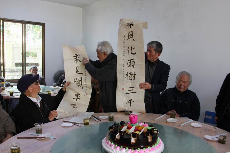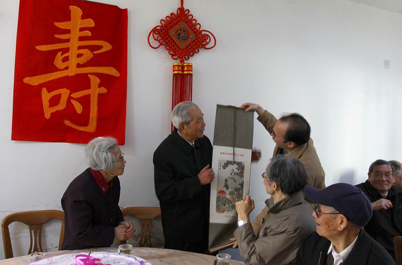 在祝词中,王书记对所有离退休教职工在过去的岁月里为电气学院作出的巨大贡献表示诚挚的感谢,并特别感谢大家对学院九十周年院庆筹备工作的支持和关心。他代表学院党政衷心祝愿关老师和所有离退休职工寿比南山,福如东海。随后,离退休教职工代表王毓东老师、学院老龄委负责人谢中奎老师也发表了热情洋溢的讲话,对关内明老师表示祝贺,感谢学院对离退休教职工的一贯关心。关内明老师在答谢词中表示了对老龄委和学院的感谢,并与王毓东老师联手作对联一副:“求是图新季九秩,春风化雨树三千”,作为学院九十周年院庆的贺礼。整个庆祝活动简朴而隆重,全体离退休教职工一起度过了美好的一天。