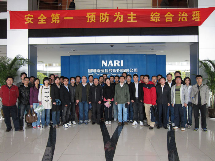 在党支委和班委的共同努力下,此次活动终于成行。4月21日早晨六点,博士班41人在党支委的带领下,出发前往南京。中午到达南京后,受到了国网电科院-南瑞集团的盛情招待,并与南瑞集团的负责人共进午餐,下午我们对南瑞集团进行了参观,公司相关人员为我们介绍了公司的基本情况,在国家大力建设科技强国的今天,国网电科院-南瑞集团依托资金与市场优势,大力发展自主科技、重视人才,紧跟国家发展的战略指导,在新能源开发方面做出了很大的贡献,成功完成了电动汽车充电站建设等国家级的重点项目。之后,我们参观了公司所做的一些产品,同学们与公司负责人进行了深入的学术交流与探讨,并且向他们了解了南瑞集团基层党支部的工作状况以及对南瑞集团运营时所起到的作用。