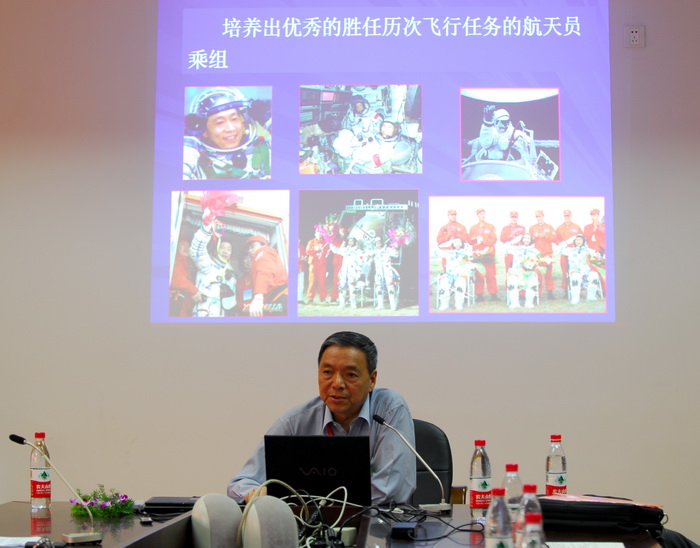沈力平少将作了题为《国家载人航天计划与航天医学工程学》的主题报告。沈力平少将原任中国载人航天工程副总设计师,曾参加我国第一艘失重飞机的设计,参加和主持多次卫星与飞船发射。在报告中,沈力平少将全面介绍了我国载人航天事业的发展历程。他指出,载人航天工程是国家长期持续发展的重大课题,而航天医学工程是载人航天事业的大力支撑。沈力平少将展示了航天医学工程的丰富研究成果,在介绍载人航天器的构成和航天员工作环境时,一张张生动的图片吸引了在场所有人的目光。在谈到与浙大电气学院航天电气技术研究团队十几年来的合作时,沈力平少将对浙大电气在载人航天环境控制与生命保障系统中所作出的突出贡献给予了高度赞扬。他说,载人航天的成功离不开浙大几代电气人的付出和心血,是浙大电气艰苦的、创造性的劳动为我国载人航天事业做出了突破性的重大贡献。沈力平少将昂扬的精神和飒爽的英姿诠释了艰苦奋斗、勇于攻坚、开拓创新、无私奉献的航空航天精神,折服了所有听众。