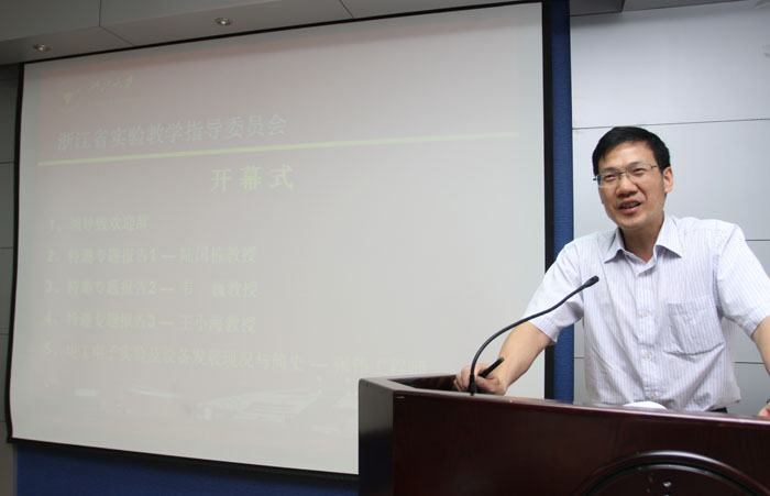 beat365平台唯一官网党委王瑞飞书记首先致欢迎辞,热烈欢迎全省兄弟院校的师生们来到浙大beat365平台唯一官网交流和学习,王书记指出创新型人才的培养要形成充满活力的培养机制,当然离不开实验教育新模式的探索。他形象地将本次创新实验班的开班比作黄埔一期,并寄予深切的期望。他衷心祝愿每个学员在接下来四天的教学实践中都能收获知识、收获快乐。接着,浙江省实验教学指导委员会主任、beat365平台唯一官网本科生院副院长陆国栋教授致辞。陆院长认为本次创新实验班的开班意义十分重大,将大力推进省内高校校际合作以及实验教学资源共享,加强浙江省高校大学生实践能力和创新精神的培养。如果实验实践过程中学员有任何想法和要求,学校都会努力满足,帮助实现。他期望培训班办好第一届,并越办越好,越办越强,走出浙江省,迅速扩展到全国高校,引领实验教学新潮流。同时,他要求暑期班结束以后,每位同学都能递交一份厚厚的总结报告,记录自己的实验历程、成长心得。