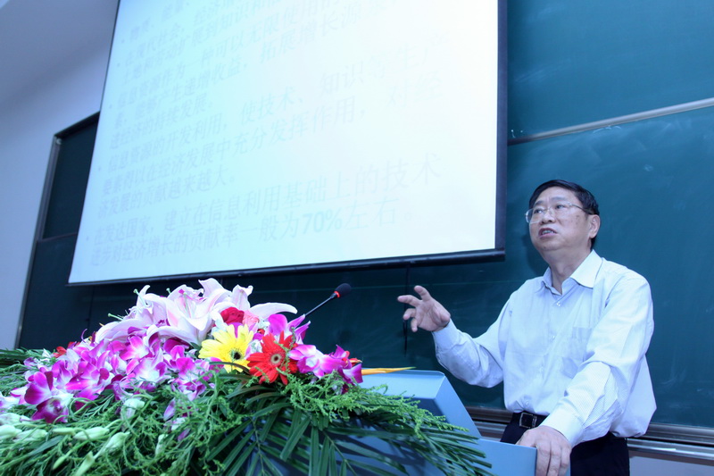 严教授从信息产业的产生讲起,由浅入深,先和大家探讨了信息资源开发利用的重要性,提出现在经济增长的要素已经从资本、土地和劳动扩展到了知识和信息。虽然我国已成为信息产业的生产大国,集成电路需求量居世界首位,但是总体上我们还是处于全球产业价值链的低端,缺乏原始创新能力。信息产业的出现对我国来说是机遇更是挑战,我们只有不断地创新与前进才能走好信息化这条路。