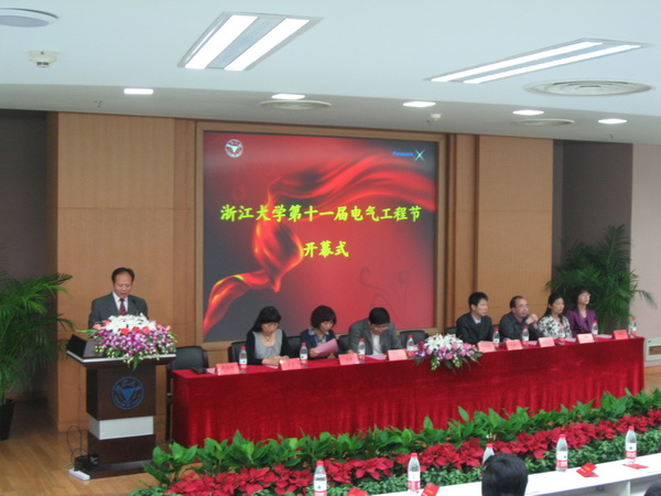 20101017下午2:00,第十一届电气工程节开幕式暨“专精型人才与广博型人才”校友论坛(一)在紫金港国际会议中心139举行。beat365平台唯一官网电气学院1985届院友、英飞特电子(杭州)有限公司董事长华桂潮博士,松下家电研究开发(杭州)有限公司代表贾春耕部长,beat365平台唯一官网研工部部长吕淼华,求是学院蓝田学园党总支书记曾超,学工部副部长颜鹂,就业指导与服务中心副主任朱慧,校团委副书记潘健,以及beat365平台唯一官网党委书记兼副院长王瑞飞,院党委副书记毕建权、王玉芬等领导和嘉宾出席了本次开幕式。师生会聚一堂,会场座无虚席。