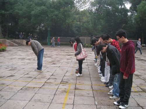 下午两点,经过中午的休整,大家精神抖擞地前往风景如画的宝石山。到达宝石山时,天空又下起了小雨,但细雨扑灭不了我们的热情。经过十几分钟的爬涉,我们到了抱朴道院。在寻幽探胜中同学们既领略了自然的美妙,也锻炼了身体。在抱朴道院后面,我们进行了丰富的活动,包括吹气球、丢筷子、踩气球,背夹球跑等。小游戏充分调动了同学们的参与兴趣,笑声琅琅中平日里紧张学业的气氛一扫而空,提供了一个良好的舒缓压力、陶冶情操、增进了同学间友谊的平台。