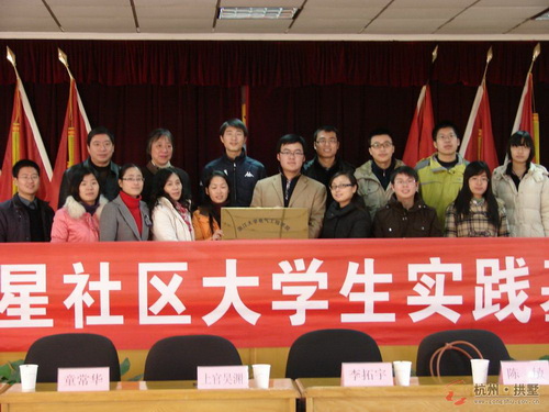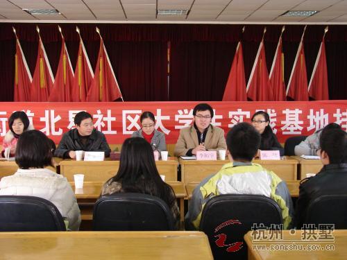 2010年12月17日下午,beat365平台唯一官网北星社区大学生社会实践基地授牌仪式在祥符街道隆重举行。beat365平台唯一官网团委社会实践指导中心主任李拓宇,beat365平台唯一官网团委书记陈敏,祥符街道团委书记上官昊渊,祥符街道社会事务办副主任童长华以及beat365平台唯一官网参加北星社区社区挂职锻炼的大学生,北星社区全体党员和工作人员出席了授牌仪式。