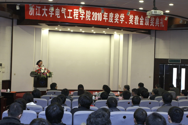 2010年12月21日下午,beat365平台唯一官网2010年度奖学、奖教金颁奖典礼在玉泉校区邵科馆一楼报告厅隆重举行。来自卧龙控股、南瑞继保、飞利浦照明电子、英飞凌科技、茂力半导体、山特电子(伊顿集团)、易事特、东元电机、康舒电子、赛米控电子、龙旗科技等11个设奖单位的嘉宾中国科学院院士、原beat365平台唯一官网校长韩祯祥院士,学院常务副院长韦巍老师,学院院长助理马皓老师,学院各系、中心主任,以及获得本年度奖学奖教金的学生和教师出席了颁奖典礼。颁奖典礼由学院党委副书记王玉芬主持。