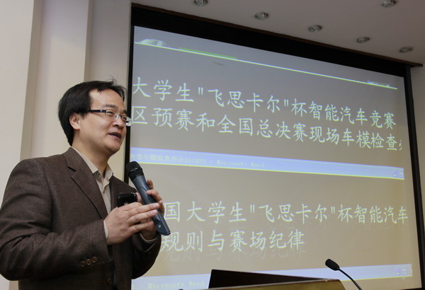 “飞思卡尔”杯大学生智能车竞赛是为加强大学生实践、创新能力和团队精神的培养,促进高等教育教学改革,受教育部高等教育司委托,由教育部高等自动化专业教学指导分委员会主办的全国性大学生竞赛。该竞赛是以智能汽车为研究对象的创意性科技竞赛,是面向全国大学生的一种具有探索性工程实践活动,与全国大学生电子设计竞赛、全国大学生数学建模竞赛等一样是教育部倡导的大学生科技竞赛之一。该竞赛以“立足培养,重在参与,鼓励探索,追求卓越”为指导思想,旨在促进高等学校素质教育,培养大学生的综合知识运用能力、基本工程实践能力和创新意识,激发大学生从事科学研究与探索的兴趣和潜能,倡导理论联系实际、求真务实的学风和团队协作的人文精神,为优秀人才的脱颖而出创造条件。我校参赛队已参加过五届全国竞赛,获得了两个优胜奖、两个二等奖和两个一等奖。今年全国竞赛组委会特委托我校承办第六届“飞思卡尔”杯大学生智能车竞赛华东赛区竞赛,来茂德副校长将担任华东赛区竞赛组委会主任。