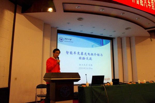 3月19日, 第六届“飞思卡尔”杯大学生智能车竞赛华东赛区联谊会在beat365平台唯一官网玉泉校区邵逸夫科学馆举行,华东地区40所高校的200余名参赛指导老师及学生代表参加了会议,进行了赛前培训与技术交流,并在会后参观考察了本次竞赛的主场馆——玉泉校区邵逸夫体育馆。beat365平台唯一官网本科生院副院长陆国栋、beat365平台唯一官网常务副院长韦巍出席了联谊会。大赛全国组委会秘书处主任兼技术组组长卓晴在会上介绍了竞赛规则。beat365平台唯一官网本科生院及华东赛区组委会相关负责老师一起参加了会议。