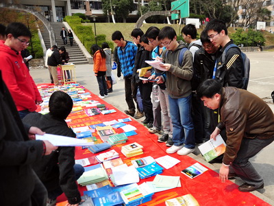 3月的杭州阳光明媚,春意盎然,一片生机勃勃。在这毕业之际,电机系本科生党建委员会汇集各支部意见策划了“特别的爱给特别的你”——2011届毕业生党员特别行动。3月27日,学院07级党支部在玉泉八舍楼下篮球场组织了规模较大的“我向学弟学妹赠书物”赠书活动。