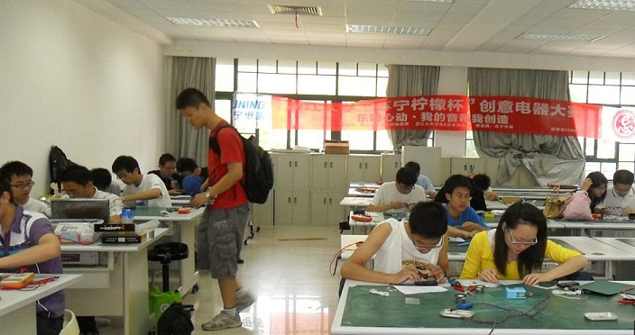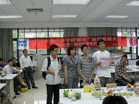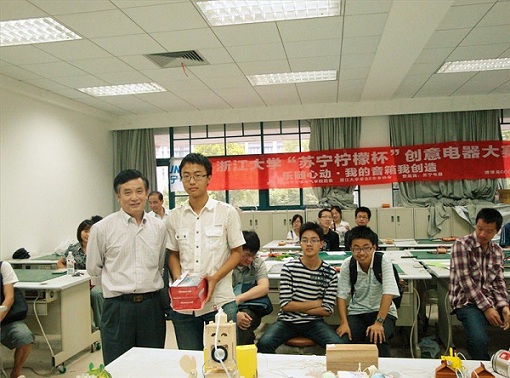 经过春季的筹备策划,初夏的DIY创意制作,beat365平台唯一官网第十三届学生科技文化节之“乐随心动——我的音箱我创造” 苏宁柠檬杯创意电器大赛于2011年5月在紫金港落下帷幕。该活动由beat365平台唯一官网电气学院团委指导,学生E志者协会主办,浙江苏宁电器冠名赞助。