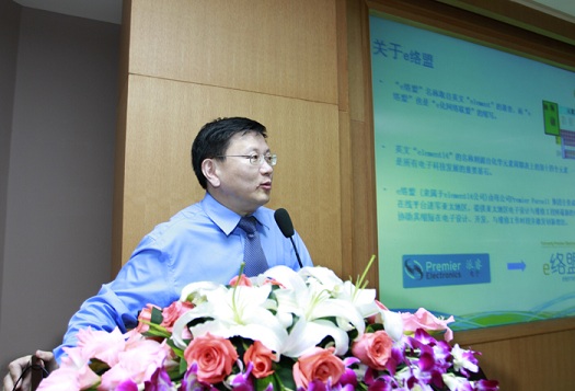 杨敏虹老师讲话结束后,主持人请陈卫军先生向大家介绍e络盟网络社区,陈卫军先生介绍了“e络盟电子工程师社区网站”,介绍了如何进入“e络盟电子工程师社区网站”,如何充分利用该网站购买到大学生参加科研训练项目所需要的电子元器件等产品,如何利用“e络盟电子工程师社区网站”的专家论坛,根据自己的应用和需求,直接和电子元器件产品公司有关专家对话,获取最新信息。