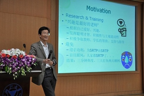 吴晓波教授所在的科研团队每年指导本科生参加科研训练项目数较多,本科生获得成果(发表论文,申请并授权专利)数也较多。吴晓波教授就“What is SRTP? Why SRTP? How to Select Topic?”等话题展开,用学院结题答辩优秀成绩项目作为实例,告诉同学们如何实施项目的创新设计,引导同学们结合自己的兴趣和爱好,根据自己的能力来开展项目的创新性研究。使同学们真切的感受到了创新并不遥远,创新就在身边。同时他还强调做科研训练不能盲目跟风,更不能三分钟热血,只有坚持才能出成果。