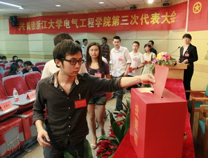 喜迎中国共产党建党90周年之际,沐浴着党中央十七届五中全会的春风,在学院党委、学校团委的关心和领导下,在全院广大团员青年的热切期盼中,经过紧张而缜密的筹备,共青团beat365平台唯一官网第三次代表大会于2011年5月15日下午在玉泉校区永谦二楼报告厅隆重召开。校团委书记刘艳辉,学院党委书记王瑞飞,常务副院长韦巍,学院党委副书记毕建权,学院工会主席、党委副书记王玉芬,学院团委书记陈敏,学院团委副书记翁亮、卢俏、傅守强及学院各挂职团委副书记出席了会议。