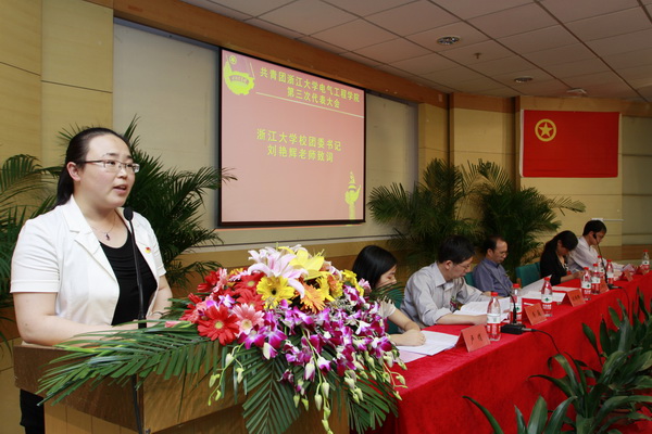 校团委书记刘艳辉首先致辞。刘书记代表校团委对本次大会的隆重召开表示衷心的祝贺,并对过去几年电气学院团委所做的工作和取得的成绩给予了充分肯定。她希望新一届学院团委能够发扬电气团委的优良传统,着重服务同学们的成长成才,在未来的几年里再创佳绩。