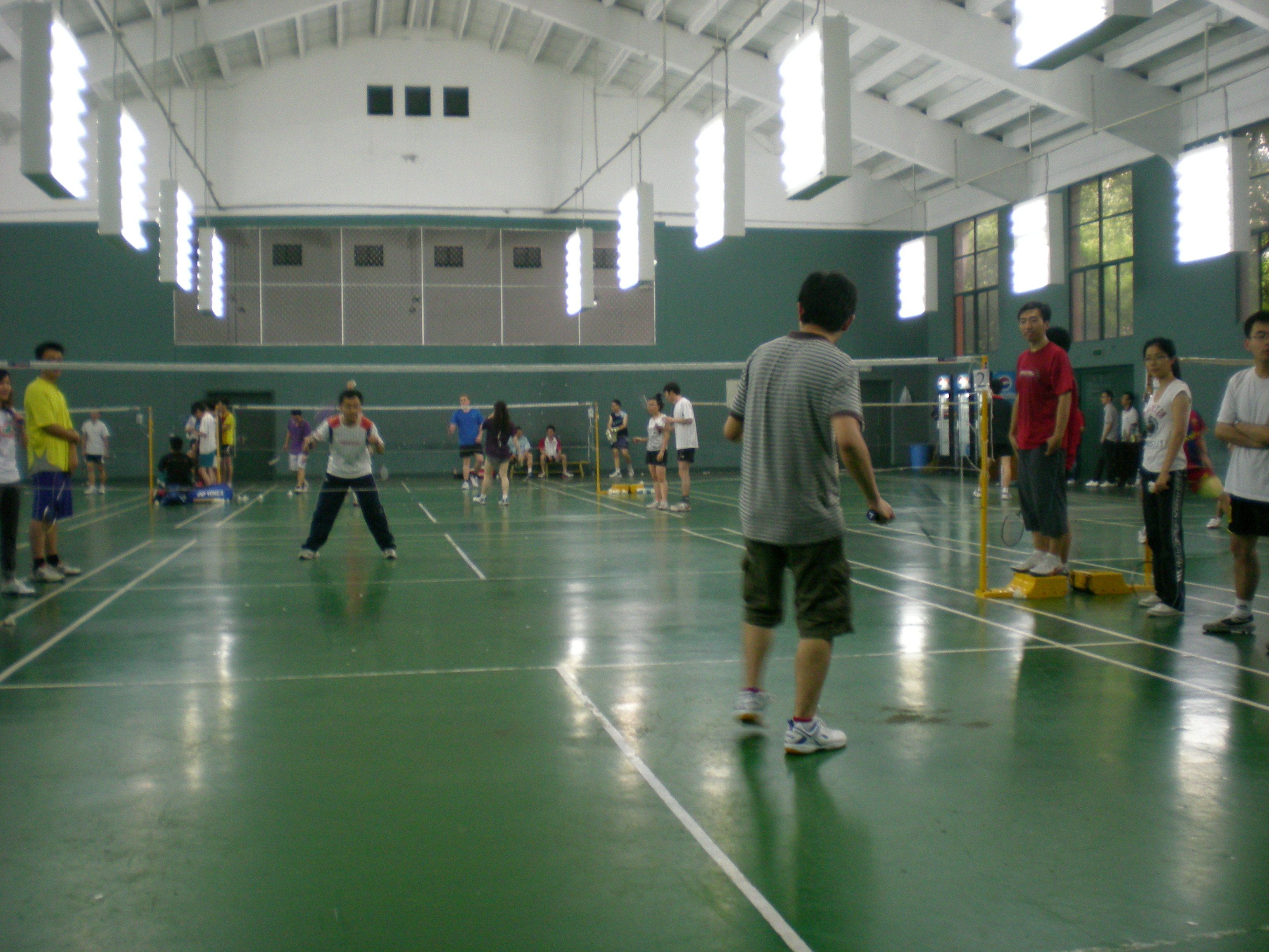 参赛同学采用抽签的方式,分为8个小队,每小队包括一名女队员和三名男队员,以小队为单位进行淘汰赛。两小队之间分别进行混双、男双和男单的比赛,最终决出冠军小队。 比赛中,场上选手奋力搏杀,场下观众看得津津有味。虽然大家都不是职业球员,失误很多,甚至有同学对于基本的羽毛球比赛规则都不是很了解,但是这些都不影响大家高涨的热情。大家都抱着友谊第一、比赛第二的心态,现场欢声笑语不断。