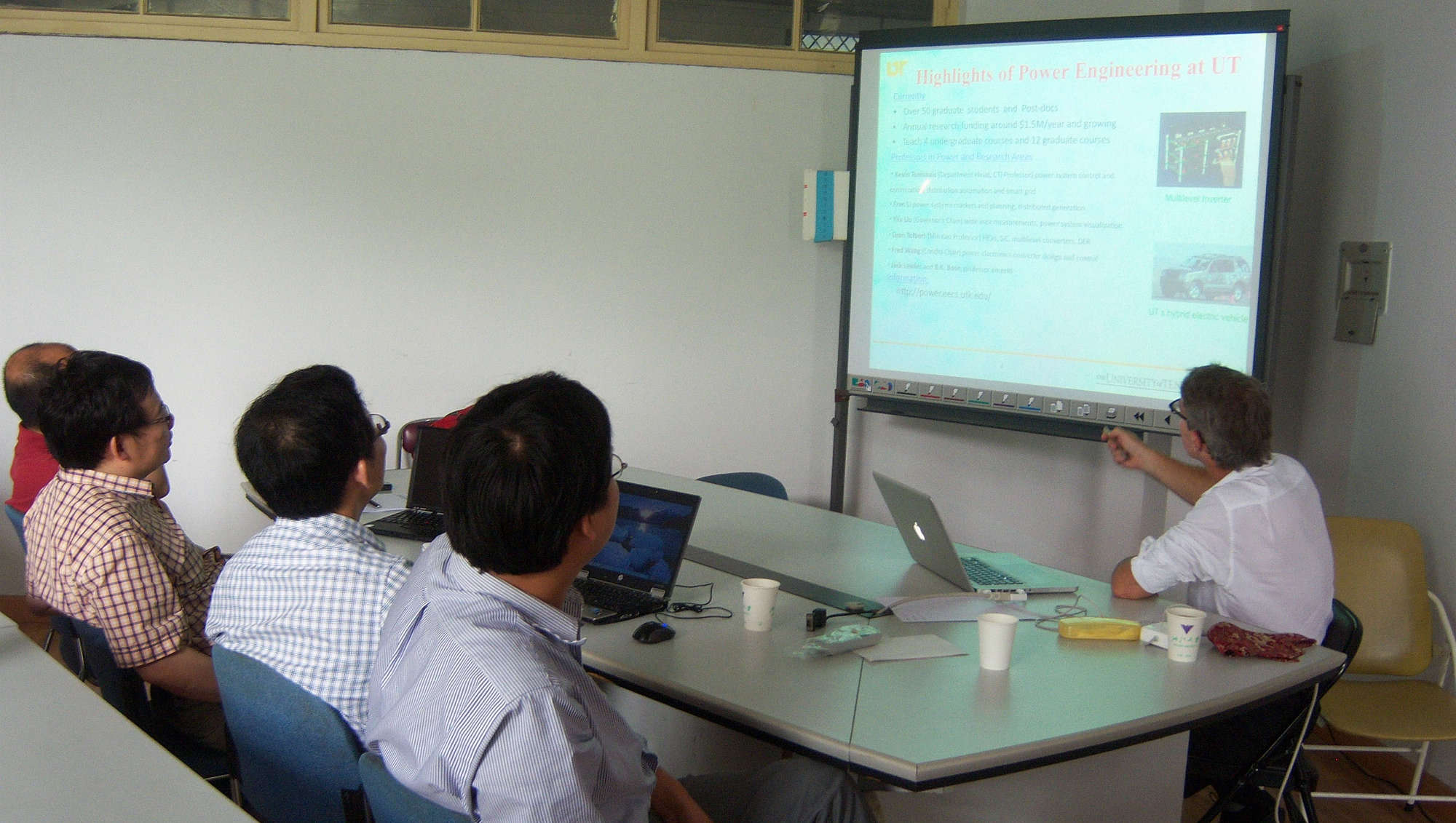 首先,Kevin Tomsovic教授介绍了田纳西大学电气工程与计算科学系及电气工程学科的总体概况、师资力量及学生培养、科研情况等,重点介绍了美国国家自然科学基金资助的工程研究中心(CURENT);江道灼教授也向Kevin Tomsovic教授详细介绍了电机系及电力系统及其自动化学科的总体概况、师资力量及学生培养、科研情况。然后,宾主双方重点就研究生联合培养、教师互访、科研合作等问题展开了热烈讨论,并达成了“充分利用各自学科与资源优势,逐步在研究生培养、教师互访、科研与学术交流等方面开展各种形式的合作”的共识和初步意向。