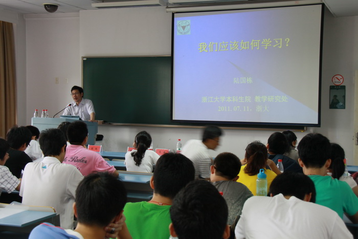 陆国栋则以“我们应该如何学习”为题首开讲座,就“不同教育阶段对比分析、大学课堂基本模式、大学教学基本任务、大学教学改革路径模式和实验教学项目分类与分层研究”等方面为同学们上了别开生面的一课。