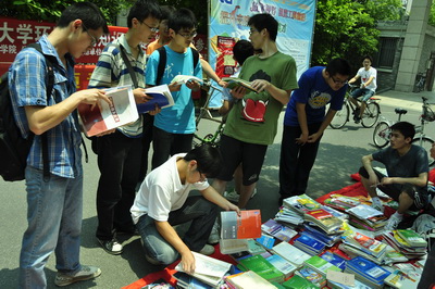 “我向学弟学妹赠书物”活动是毕业生党员特别行动系列活动的第二个子活动,其面向对象是电气学院的学弟学妹们,主题是“毕业大赠送”。以支部党员为主体,并号召周围群众同学,调动所有大四的同学,按照自愿的原则,向学弟学妹们捐赠书籍。为配合第一个子活动,我们在捐赠过程中对部分书籍进行了2~3折义卖。为方便不同年级的学弟学妹取书物,我们分别于3月底和6月初在玉泉和紫金港两个校区进行了捐赠活动。其中,3月27日的赠书活动在玉泉校区8舍篮球场举行,赠送书籍150余本,得款项585元,这次活动的受益者主要是电气学院大三的学生,其中考研书籍尤其受到欢迎;6月3日的活动在紫金港校区蓝田学园举行,赠送了剩余的全部书籍和新捐赠上来的书籍,得款项511元,并将受益者的范围扩大到大一、大二的学生。两次活动共接收赠书600余本,得款项1096元。活动受到了学弟学妹的热烈欢迎和广泛好评,他们还抓住机会和即将毕业的党员交流学习生活中的困惑。