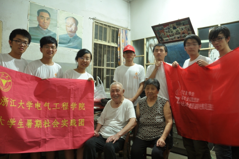 由于城市的改建,陈老家的地址早已改名,我们费了好大周折终于找到了陈老的家。陈老的家在底楼的一个角落,光线很暗,但室内很整洁。墙上挂着巨幅的毛主席和周总理的画像,看上去还很新的样子。另一边墙上挂着贴满老照片的相框,记载了老人的戎马岁月。陈老很高兴有那么多的青年人来看他,乐呵呵地招呼我们坐下,听他讲讲过去的事。