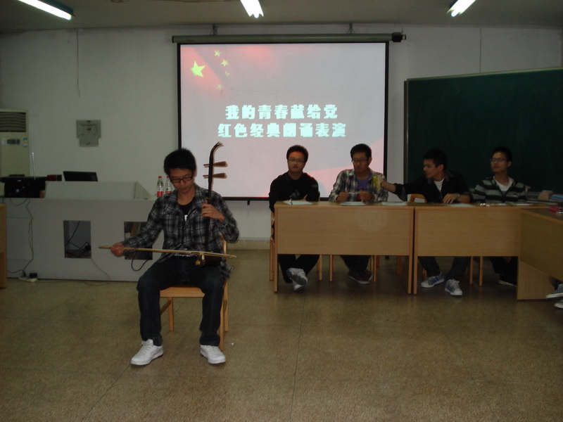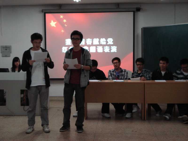 2011年10月16日晚上6点整,在一片欢声笑语中,由电信0801团支部和电自0803团支部共同组织开展的“我的青春献给党”室内联欢会开演了。大家齐聚一堂,脸上洋溢着喜悦,现场活动气氛非常热烈。