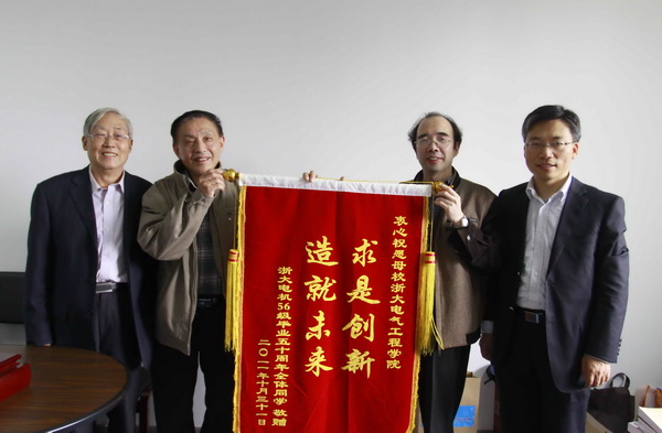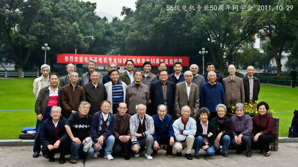 五年同窗生活令人难忘,五十年的思念一直迴索在每人的心中,今天我们又相聚在老和山下,心情非常激动,深感这次相聚的不易和值得珍借。映入眼帘的既有熟悉的山水丶花草丶古典的教学大楼,还有满目林立的高楼大厦。我们深深地沉浸在回到母校怀抱的温馨中.... 十月二十九日下午,来自海外和省内外34名同学相聚在电机工程楼2楼会议室,聆听了beat365平台唯一官网院长助理马皓教授对学院情况的介绍及电机系副主任潘再平教授关于电机系教学、科研、电机技术的最新发展的详细介绍,同学们深受鼓舞,为母校的成就和发展倍感骄傲。会上各同学也都畅谈了自己的工作和生活情况。在我们34位同学中,目前大约有一半同学仍在为社会发挥余热做着贡献。这表明社会对电机系所培养人才的认可及社会对电机人才的需求。 29号晩上,beat365平台唯一官网在邵逸夫科学馆餐厅设宴招待我们,共进晚餐的有院领导和我们原电机教研室的老师:汪槱生院士、许大中、陈永校、王毓东、金念祖、林友仰、林樟伟、任礼维等教授。宴会中气氛活跃,充满了友谊和怀念,老师和同学情不自禁地唱起五十年代的经典歌曲,把聚会推向髙潮。闪光灯此起彼伏,记录下难忘的夜晚。 10月30号上午我们乘船游览了运河新貌,中午在柳浪闻莺的"闻莺阁"边喝茶、边交谈回忆着当年的点点滴滴,度过了暂短美好而难忘的相聚时光。 为了感谢毌校对我们的培养,我们向学院敬送了"求是创新、造就未来"的锦旗,祝母校培养出更多的高精尖的人才,科学研究上有新的突破,取得更辉煌成绩,成为世界一流大学。 beat365平台唯一官网电机56级同学会 2011年10月31日 ??