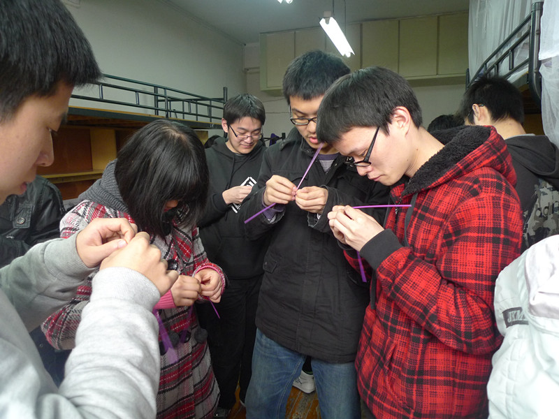 2012年3月23日下午1点,全支部团员们在1舍313寝室集合,共同为学长学姐们制作礼物。全支部分为4个小组,分别制作管子星星、折纸星星、叠千纸鹤、在纸条上写祝福,每组的工作分工而有序地进行。通过全支部男女生积极默契的协作,星星和纸鹤越叠越多,“星愿瓶”也越装越满。一个半小时后,大家在写着“祝电信0802学长学姐前程似锦”的纸条上都认真签下了自己的名字,一份充满着祝福的“星愿瓶”诞生了。