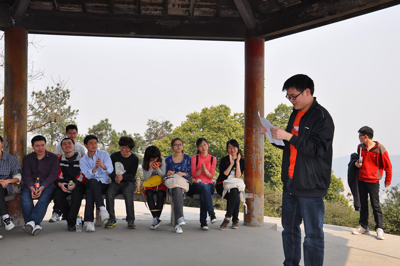 我们一行人在经历了700台阶后的艰辛和攀爬后,达到了位于老和山顶的亭子。在这里,我们先组织了两个团支部的相互交流。然后,在自动化0902团支书严方同志的主持下,进行了团史问答活动和主题演讲活动。在团史问答活动中,同学们的参与热情很高,纷纷踊跃参与竞答。对于不明白和不了解的团史知识,一班、二班的团支书都一一进行了讲解,并在知识问答后给回答正确的同学颁发了礼物。其次,我们进行了主题为“青春,阳光,理想”的演讲活动,由自动化0901班团支书张世瑾同志主持。有演讲才华的同学纷纷积极参与,并对该活动颇有好评。