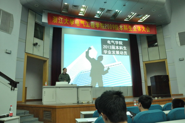 马皓教授的宣介为在座的同学们指明了未来前进的方向,而接下来电气专业、自动化专业、电信专业教学主任潘再平、姚维、陈国柱三位教授则分别介绍了各专业学科2009级实施“卓越计划”的企业实习单位,企业对学生的要求以及各专业学科实施“卓越计划”的管理与考核办法等。其中潘再平教授主要针对电气工程及自动化的两个方向分别向与会同学介绍了浙江省电力设计院、卧龙控股集团有限公司、浙江省电力试验研究院、杭州市电力设计院有限公司、东元总合科技(杭州)有限公司以及威灵上海研发中心等几个单位的具体情况。姚维教授则是首先介绍了自动化专业卓越计划的总体安排,随后结合杭州鸿雁电器有限公司与杭州中粮包装有限公司两家单位进行了详细的讲解。电信专业的陈国柱教授也按照专业内的两个方向分别向与会同学介绍了台达能源技术(上海)有限公司、飞利浦亚洲研究院(上海)、杭州矽力杰半导体技术有限公司以及亚德诺半导体技术(中国)有限公司共四个实习单位的自身情况和对于实习学生的要求以及考核办法。
