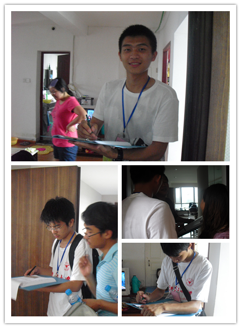 之后我们自己开始一户一户的进行统计。按照社区工作人员的指导,以及自己平时在学校锻炼的语言表达能力。敲开了第一家住户的门,开门的是一位阿姨,我们简单了介绍了自己,看得出她还是有点不信任,之后我们出示了准备好的工作证,并告知我们是beat365平台唯一官网暑期社会实践的队伍,又经过深入的交谈,我们逐渐熟悉起来。这一家四口来自重庆,在这里租房子住,有奶奶,爸爸,妈妈还有一个刚刚满月的孩子。生活的还算幸福,平时,爸爸妈妈工作,奶奶带孩子,中午,晚上的时候爸爸妈妈其中一个人会回来煮饭吃。四口人其乐融融。但是谈到是否有什么生活困难的时候,爸爸说:孩子的教育问题一直比较头痛,再就是现在虽然有暂住证了,但是要留下来发展,杭州本地的户口还是个比较大的问题,最重要的是夫妻二人受教育的程度不是很高,相关政策法规还不是很了解。我们一一记录下来,并告诉他们,我们会及时向社区反映情况,建议他们多多帮你们关注相关信息,解决他们生活中的困难。