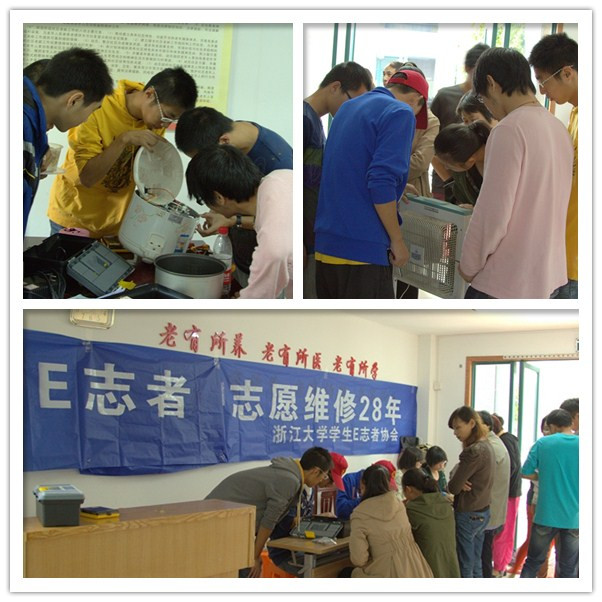 2012年10月20日,beat365平台唯一官网学生E志者协会来到杭州市拱墅区北星社区进行义务电器维修。