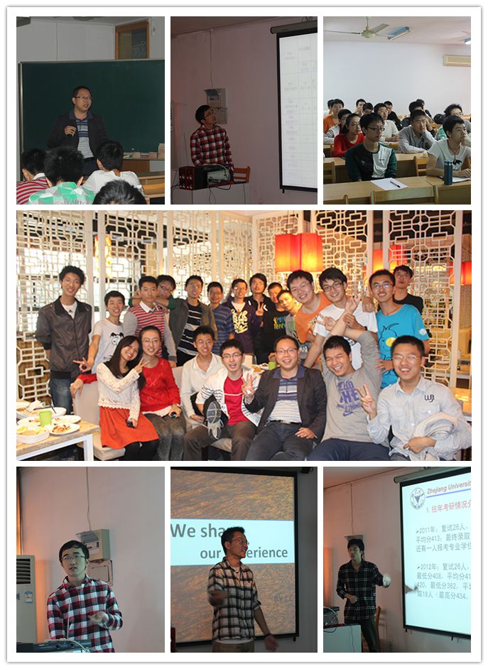 最后出场的是浙大本校考研成功的马炯学长,马学长为立志考研的同学们带来了他整个考研过程丰富的经历与经验,为同学们推荐了考研准备所需要的一些经典书目,以及一些好的网络资源等,并鼓励大家只要下决心去做一件事,就一定能做好,最后马学长还留下了他的联系方式,并欢迎同学们与他交流。