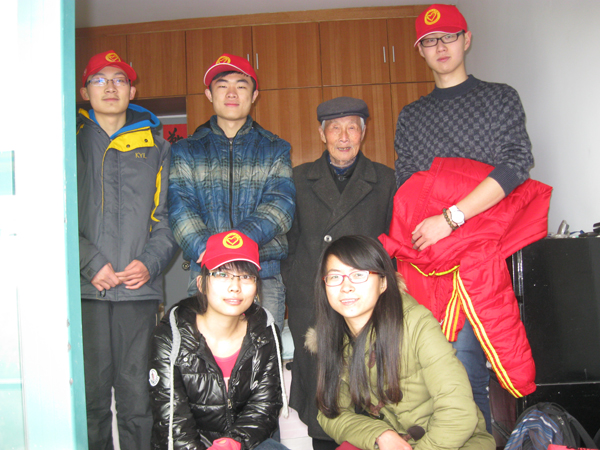 孤寡帮扶的另一组在社工的引领下去帮助独居的需要帮助的爷爷奶奶们。第一个是一个和蔼的老爷爷,他很热情地欢迎了同学们,还一个劲得表达了自己的谢意,并拿来了工具。大家都不留余力地开始了打扫工作。其中令人影响深刻的一个同学帮老人洗纱窗。一开始还不太会,以为用水冲一冲就可以了,不想仍很脏,后来就用抹布擦。不一会儿,就略有技术得力度均匀地擦起来了。不久,老人的屋子就一尘不染了。同学们与老人合了影,前往了下一个帮扶点。