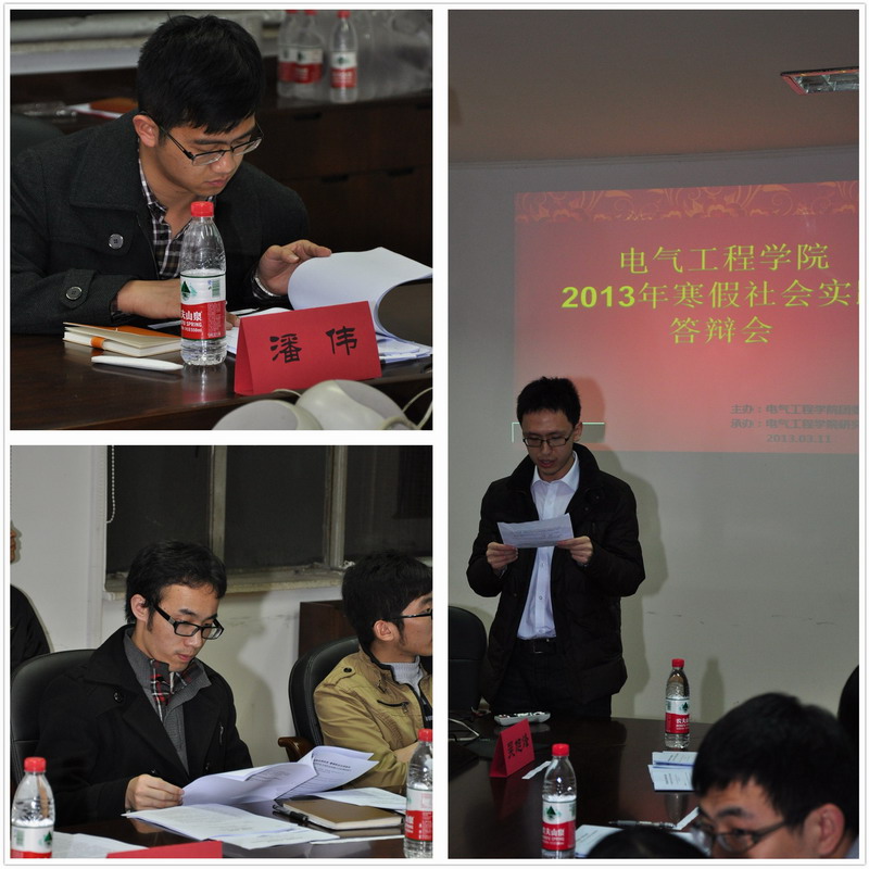 2013年寒假,电气学院研究生团总支在校团委和学院团委指导下组织开展了以“国家电网公司行业改革及其对在校研究生的影响”为主题的寒假社会实践活动,经过学院团委和团总支对各小组上交材料的审核,3月12日晚8点,9支队伍在电机工程楼201进行了精彩的申优答辩。