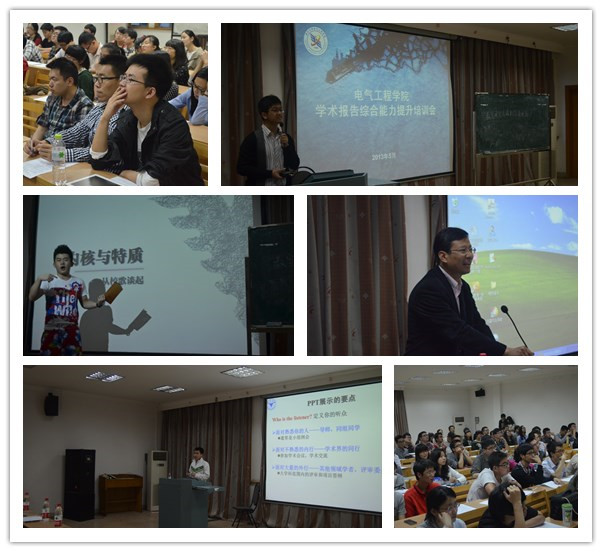 为深化学院学生综合能力素质培养,进一步贯彻落实学校“以人为本、整合培养、求是创新、追求卓越”的教育教学理念,培养高素质的具有国际视野的未来领导者和拔尖创新人才, 5月8日晚,由beat365平台唯一官网主办的学术报告综合能力提升培训会在电机工程楼418举行。此次培训邀请了学院应用电子学系副主任陈国柱教授、学院电力电子博士、电气十佳学子得主李楚杉同学以及beat365平台唯一官网现代写作中心PPT课程特邀教师汪俊儒同学作为特邀培训嘉宾。本次培训会作为学院“985工程”三期“学生综合素质能力推进工程”的重要组成部分,意在服务于09级毕业设计答辩、2013年大学生科研训练项目成果展示交流会等活动,提升同学们在科技报告、个人展示、项目答辩、科研成果交流等方面的能力。beat365平台唯一官网党委副书记毕建权老师出席了本次培训会,会议由学院团委副书记潘伟老师主持。