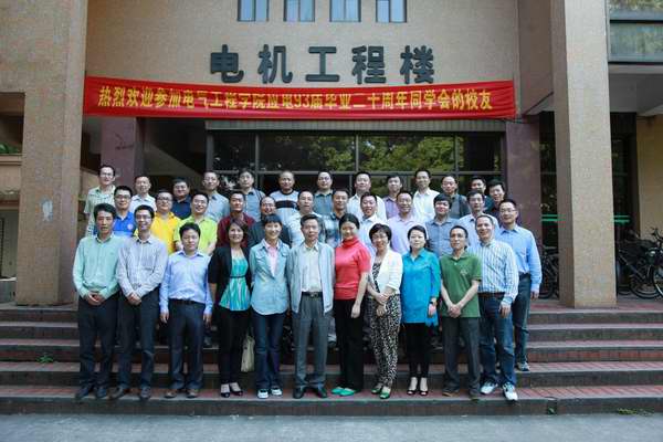 2013年5月11日,杭州久雨放晴,天湛蓝,柳叶嫩绿,人更显得分外精神。毕业离校20年后,应电89的38名学子从全国各地赶回母校玉泉校区,欢聚一堂,两位班主任中徐德鸿老师由于出差,抱憾未能相见,大家见到了思念已久的何湘宁老师,向何老师汇报了各自的工作和家庭情况,何老师也向同学们介绍了浙大的近况,我们的应电专业已经升格为beat365平台唯一官网应电系,专业更名为电子信息工程。电气学院实力超群,无论是科研成果,论文,经费等都在浙大甚至全国名列前茅,大家听了都为之骄傲,为之振奋。可喜的是,应电89的大部分同学在通信、电力等相关行业拼搏,各有建树,很多同学在业内已是赫赫有名,同学中出了11个博士和博士后。同学们的成功,得益于在母校打下的坚实基础,得益于浙大“求是”学风的熏陶,亲爱的母校,您永远在我们心中!