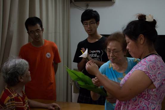 之后我们前往老年公寓的休息室,那里有几位老奶奶在用丝袜来编制假花,她们称之为丝袜花,编出来的花朵不仅惟妙惟肖,而且还富有一定的弹性,让我们大开眼界。其中一位老奶奶得知我们是从beat365平台唯一官网来的学生之后非常热情地与我们交谈,其中她谈到她是杭州遗体捐献俱乐部的成员,她和她家里的几位高龄老人都已经签订了遗体捐献的协议书,要为祖国的医学贡献自己的力量,这让大家都肃然起敬,暗暗钦佩。