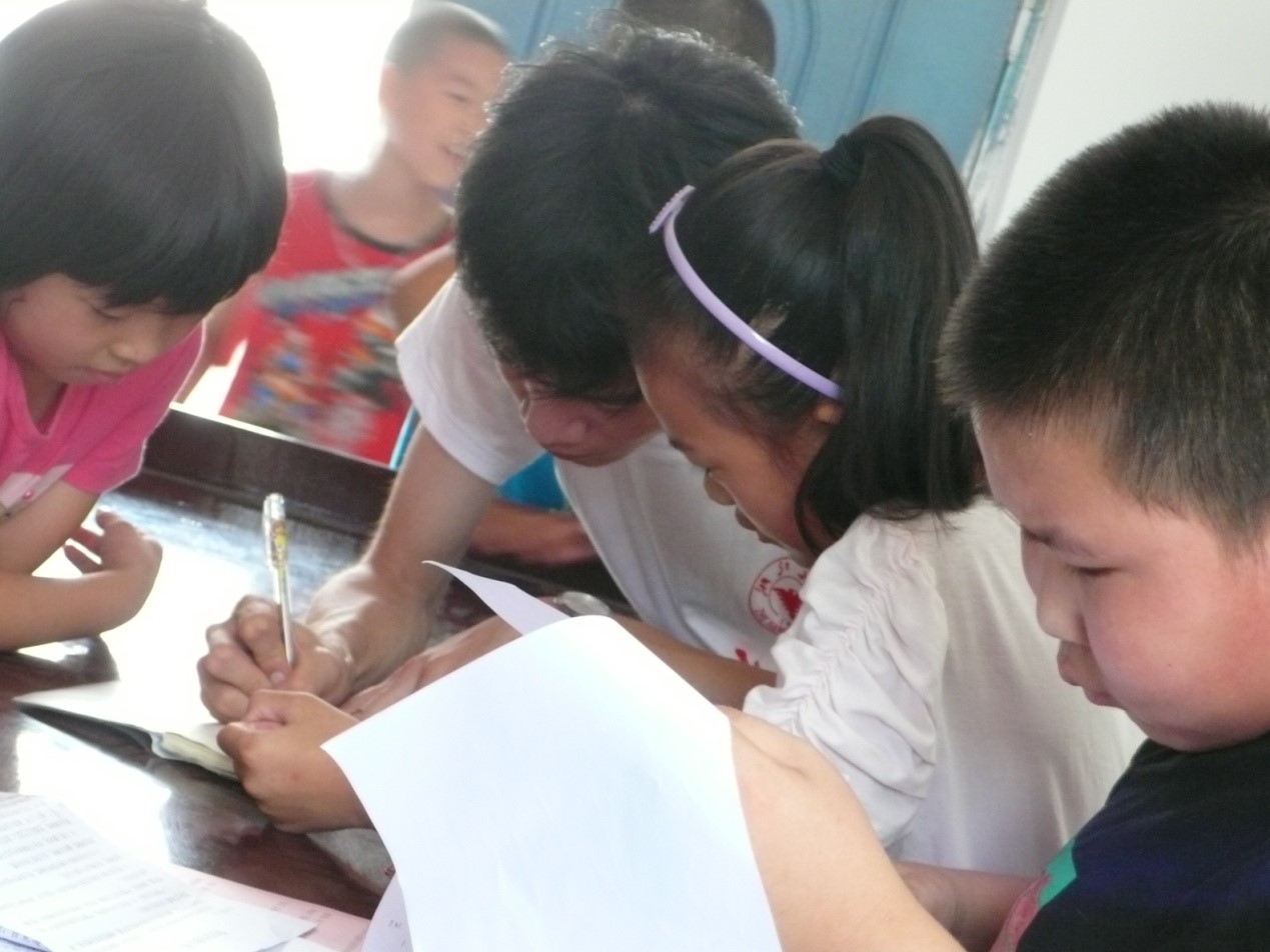 杨凯文老师在辅导孩子们暑期作业(摄影:窦晓昕)
