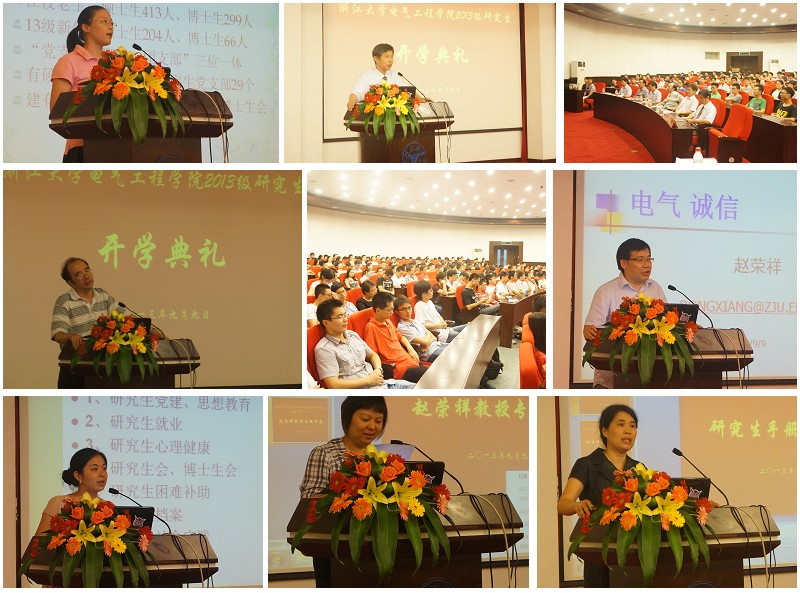 庄严雄壮的国歌声之后,何湘宁院长代表学院从师资力量、学科专业、科研创新、学术交流、人才培养等方面,向2013级研究生们介绍了beat365平台唯一官网的概况,并以学院悠久的历史和卓越的成果来激励新一届电气学子们努力进取、开拓创新。何院长还向广大研究生新生提出了几点期许,希望同学们能在学业和能力等各个方面全面发展,不断提升自我,追求卓越。