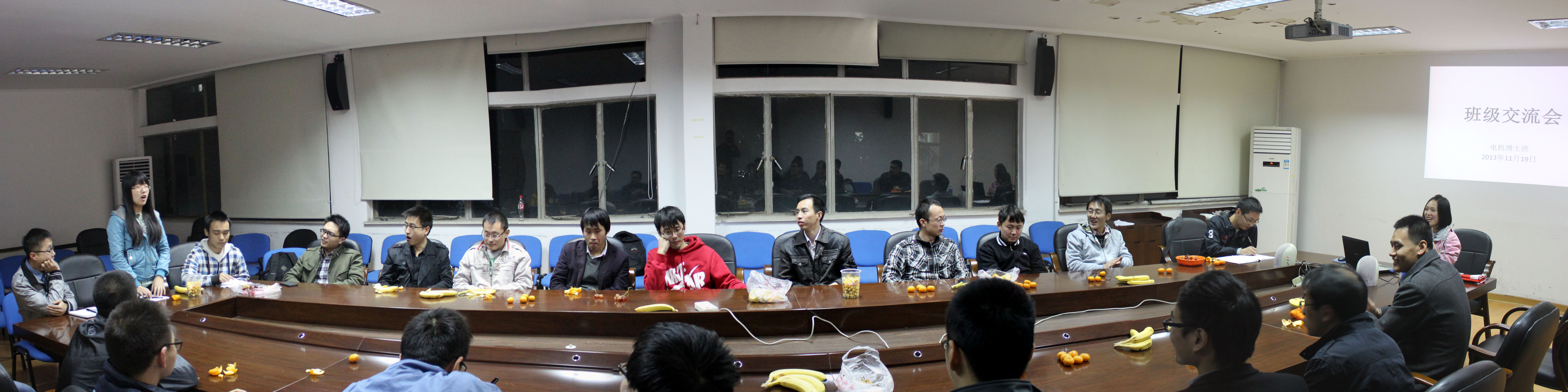 2013年11月19日,电机博士班在电机工程楼201举行了以“经验分享,华丽传承”为主题的班会暨学术分享交流会。此次班会的主要内容为电机学科优秀学长的学术分享交流,旨在传承电机博士班内部优秀学长的学习和科研经验,为低年级博士生的科研方法提供指导,同时加强班级同学之间的沟通和交流,增强班级凝聚力,同时为即将开展的毅行活动举办一个小型动员会。