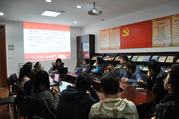 本次“中国梦”分享会由学生会主席团成员蒋威主持,会议分为分享和讨论两个环节。首先蒋威同学对党的十八届三中全会的内容做了全面的介绍,同时他也将自己在学习十八届三中全会会议精神、研读会议热点议题过程中的感想,和自己在学习过程中的生发的问题与大家进行了交流。在接下来的讨论阶段,与会同学踊跃发言,不仅对蒋威同学提出的问题展开了激烈的讨论,而且还联系自身对“中国梦”的理解畅谈学习党的十八届三中全会精神的体会和收获。同学们纷纷表示,通过学习党的十八届三中全会精神,他们更加深刻的体会到了作为一名大学生要认真学习和贯彻党的指导方针,树立正确的世界观、人生观、价值观,提升自身思想政治素养,培养团队协作、实事求是的精神。同学们以此作为契机对学校的教学建设、教学改革提出了自己的建议。