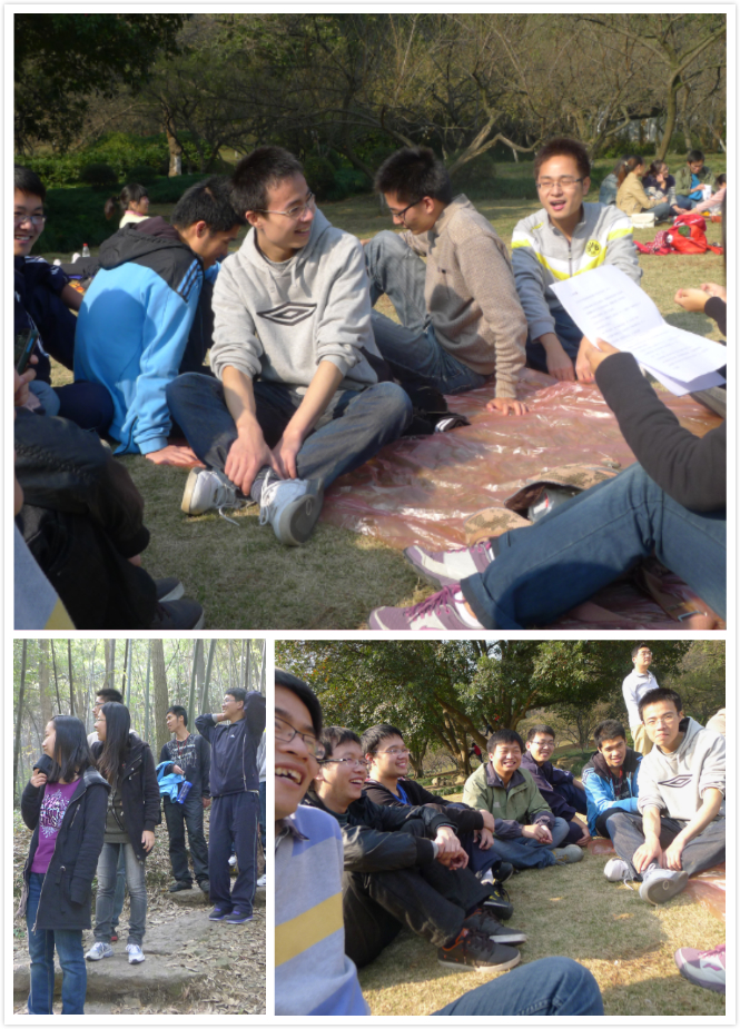到达植物园之后,我们就毛泽东的事迹展开了有奖知识竞赛。竞赛的内容主要是针对于毛泽东以及共产党成立之初至今的一系列大事。在知识竞赛中大家积极参与,踊跃抢答。同时,支部书记李俊同志还跟大家分享了毛泽东同志一生的事迹,讲述其是如何在黑暗中探索真理,同时也正视了毛泽东晚年的失误。在支部书记的分享之后大家就毛泽东的为人处世展开讨论。经过大家的讨论,大家一致认为,伟人之所以成为伟人,除了其丰富的学识,过人的胆魄之外,更重要的在于自己能够在外界的影响下坚持自己的主见,而这种主见是基于实践,基于历史和现实的。这正是我们大学生研究生在学习的过程中应该借鉴的地方。另外还有同学指出,毛泽东热爱运动,而现在许多的大学生都没有运动的习惯,要想为健康工作50年,必须有一个强健的体魄。