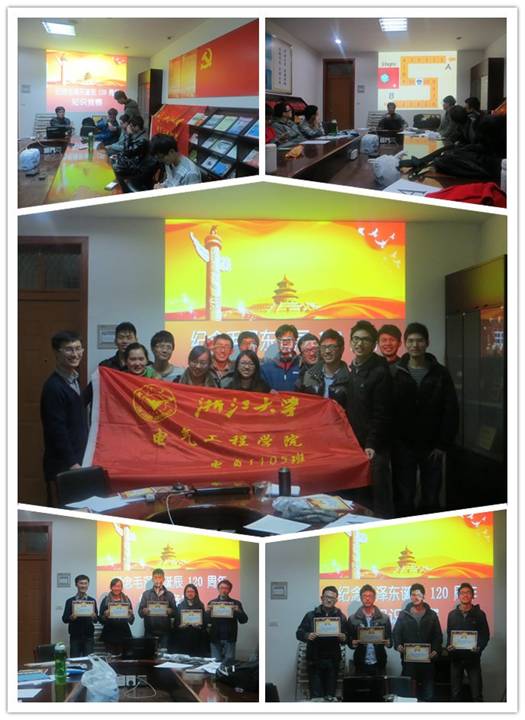 2013122219时,继登顶北高峰和诗词朗诵之后,电气1105本科生党支部在教二党员之家举行了本学期支部立项活动的最后环节——纪念毛泽东诞辰 120 周年主题知识竞赛。支部全体党员和部分入党积极分子共15人参加了本次活动,现场气氛十分热烈,取得了寓教于乐的良好成效。
