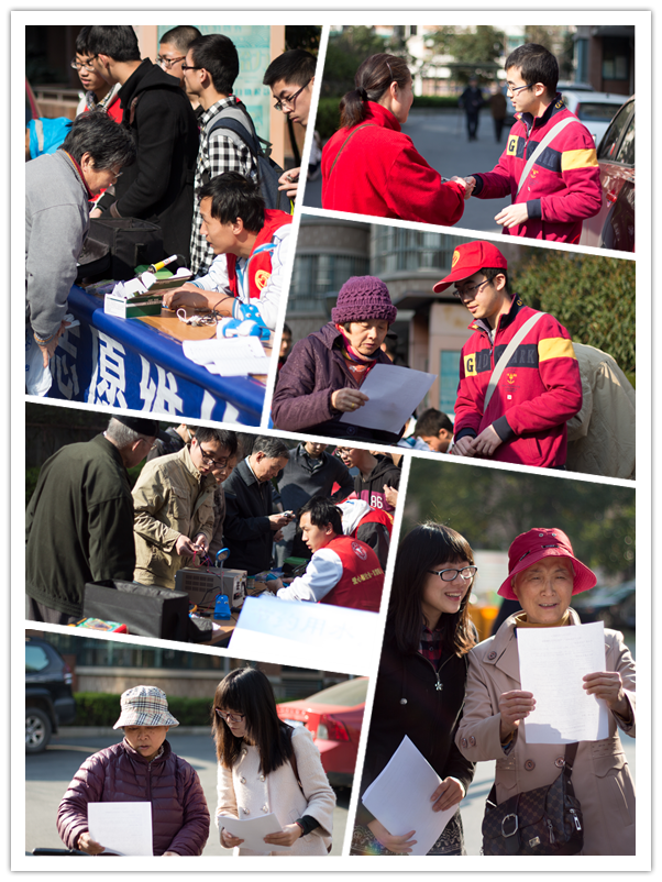另外,在“五水共治”节水宣传活动中,志愿者们将前期准备好的展板、横幅和传单,在电器维修场地旁边开始了宣传。求是社区住的都是很多都是浙大的退休教师,对我们的活动非常支持。宣传过程中我们还遇到一位退休的地质学教师,给我们讲了一段南水北调的方案,这样“听课”的感觉很是亲切。