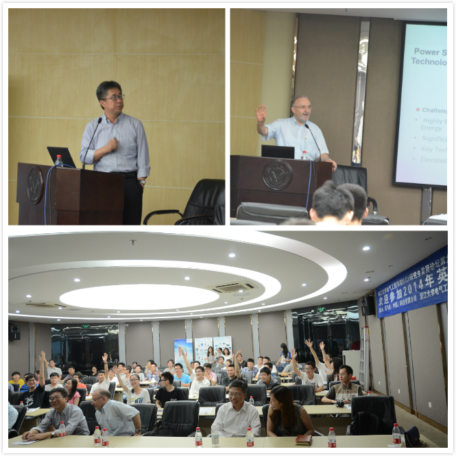 接下来,IEEE Fellow同时也是ECPE(欧洲电力电子中心)主席的Leo Lorenz博士为大家带来一场题为“power semiconductor devices-an enabling technology for future power electric system”的主题演讲,将活动推向了高潮。Leo Lorenz博士四十多年来致力于功率半导体器件和功率IC技术革新及应用技术研究,长期在西门子和英飞凌等企业工作。他在快速开关功率器件的众多发明已被广泛地应用于电力电子系统领域。他还积极通过国际学术会议展示他的最新研究成果,为全球电力电子技术的发展做出了卓越的贡献,被公认为功率半导体技术及能量变换应用领域的世界顶尖科学家。Leo Lorenz博士精彩的演讲结束后,同学们和Lorenz博士进行了积极的交流和互动,并由 马皓老师和胡长生老师抽出了几位幸运观众,送上了活动的纪念奖品。