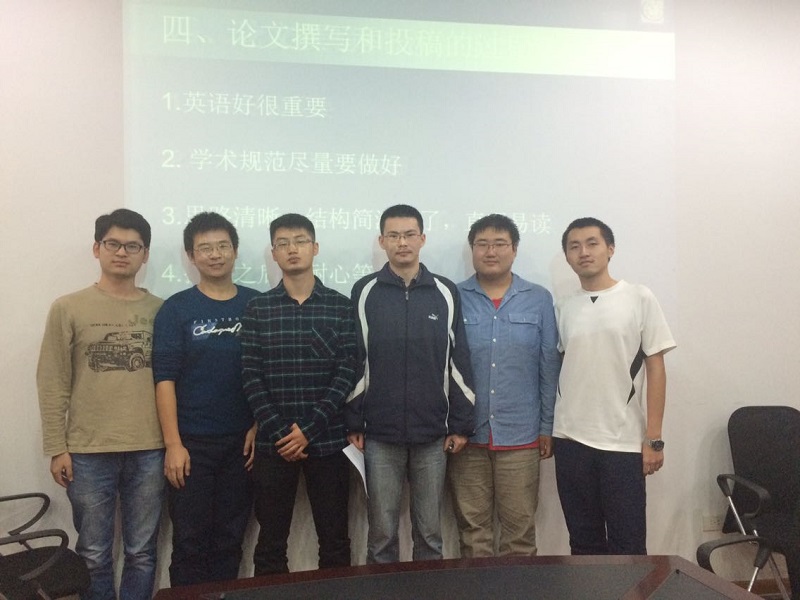 晚上6点30整,伴随着热烈的掌声,交流会准时开始。系统博士班本届党支部书记夏杨红首先为班级同学介绍了黄超师兄的科研学术成果,通过他的介绍,同学们都迫不及待地想听黄超师兄的科研经验分享。黄超师兄的报告“我的博士科研心得和经验“包含以下内容:第一部分是要求我们在学习过程中需要掌握的基础知识,主要是推荐了一些数学理论基础方面的书籍;第二部分是介绍一些控制理论方面的书籍,包含一些经典的外文书籍和中文书籍;第三部分为黄超师兄撰写论文与投稿过程的心得体会,他告诉我们要在等待审稿的要耐心等待,切莫催稿,否则会适得其反。黄超师兄还告诉大家要学好英语,要精读一些顶级期刊上的大论文,把握方向寻找思路。黄超师兄汇报完之后,在座的同学们也纷纷对师兄汇报内容中疑惑之处进行提问,现场讨论氛围高涨。黄超学长的分享,引发同学们对今后学习道路更深一步的思考,在一定程度上指引了大家的学习方向,也为大家科研强国,复习中华的中国梦指引了方向!