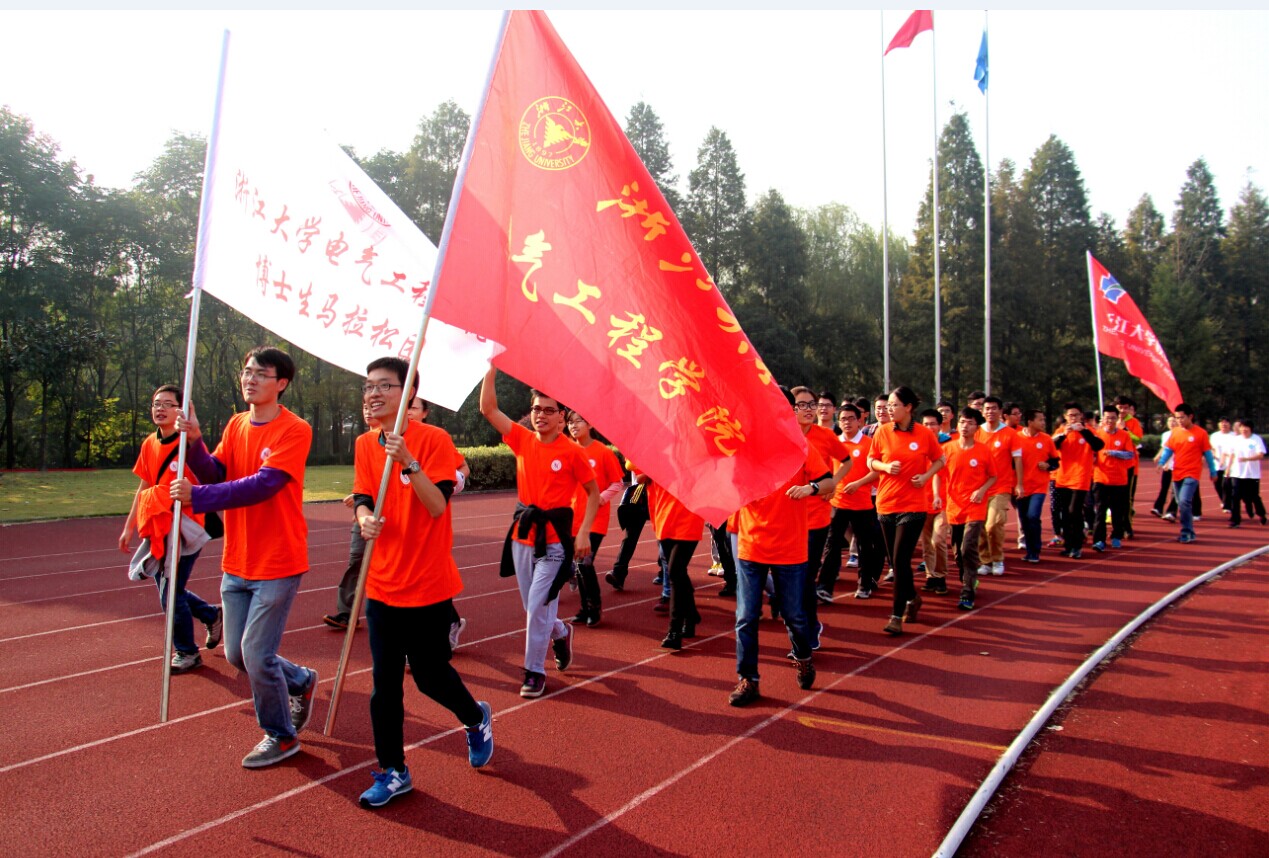10月24日,beat365平台唯一官网2014年秋季运动会拉开帷幕。在晨光中,紫金港校区田径场上人头攒动,彩旗招展,各院系、学园、单位的参与人员身着统一的运动套装在场上整齐列队。开幕式中, 浙大党委书记金德水宣布2014年浙大运动会及阳光健身跑开幕,校长林建华致开幕词。上午8时20分,万余名师生在校领导的带领下,从紫金港田径场出发,奔跑着迈进了灿烂的阳光中。beat365平台唯一官网代表队统一着装,橙色的上衣明艳如旭日一般,在环绕整个紫金港的长跑巨龙中十分耀眼醒目,白红两面硕大的旗帜在风中猎猎作响,引领着电气学子们一路斗志昂扬地前行,四千米的长跑也显得转瞬即逝,大家都从中感受到了运动的激情与快乐。