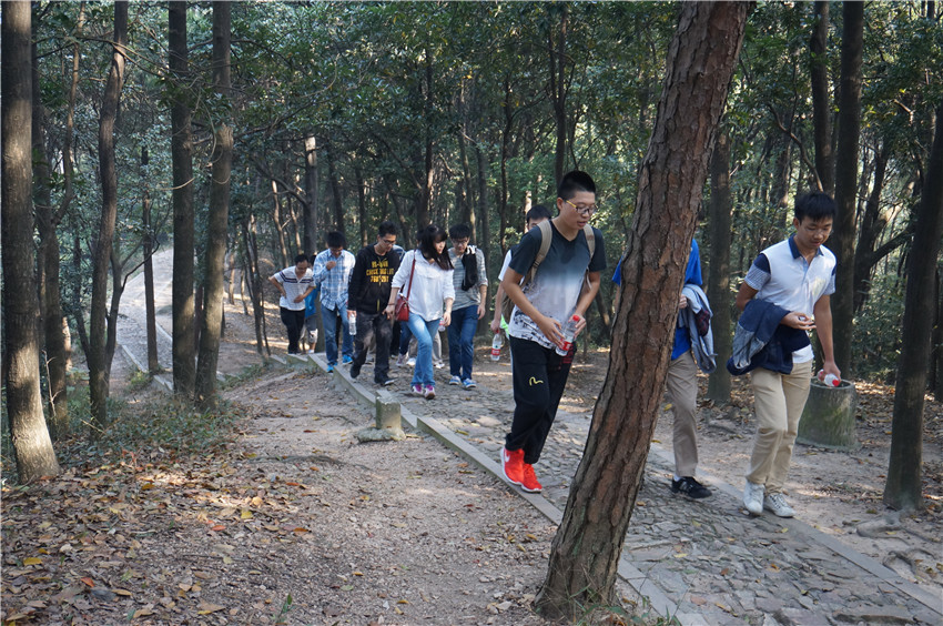 2014年10月25日,我们团支部的成员早早起床;同学们兴致颇高。虽然今天是礼拜六,或许大家会习惯性地晚起一点儿,但是同学们都在预定的7:30之前到毛像集合,颇为难得。有些随性,有些故意。可能是清晨的缘故,老和山上“人烟稀少”,山下太阳光虽然是火辣辣的,但一走进这绿树成荫,繁花似锦、泉沛林茂的林子,顿感凉爽宜人,心里暗暗庆幸来得正是时候,老和山的静雅是另有一番韵味的。