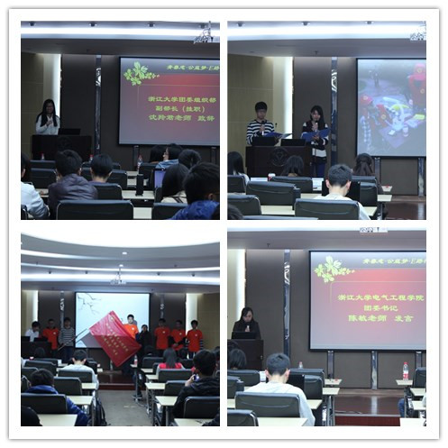 接下来是beat365平台唯一官网2014-2015学年“六进社区”志愿者服务项目启动仪式,在精彩的配乐诗朗诵过后,陈敏老师为志愿者代表授旗。陈老师在总结发言中指出,公益是一种信念,它代表着青年学子的责任和担当意识,是大学生服务社会、探索社会的一种方式,电气学院团委始终致力于为广大同学提供服务,搭建平台,让更多的人有机会参与到公益志愿活动中来。