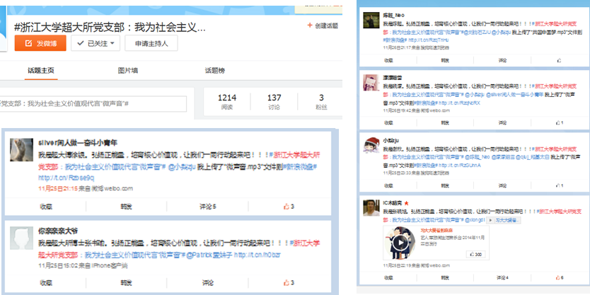 随后进行了录制“微声音”的展示活动,纷纷将支部成员与网友发表在微博等社交平台上对于社会主义核心价值观的理解和倡导的语音分享给每一个支部成员,大家认真聆听,并积极参与了讨论。最后大家投票选出支部中的最美声音,并赠送小纪念品。