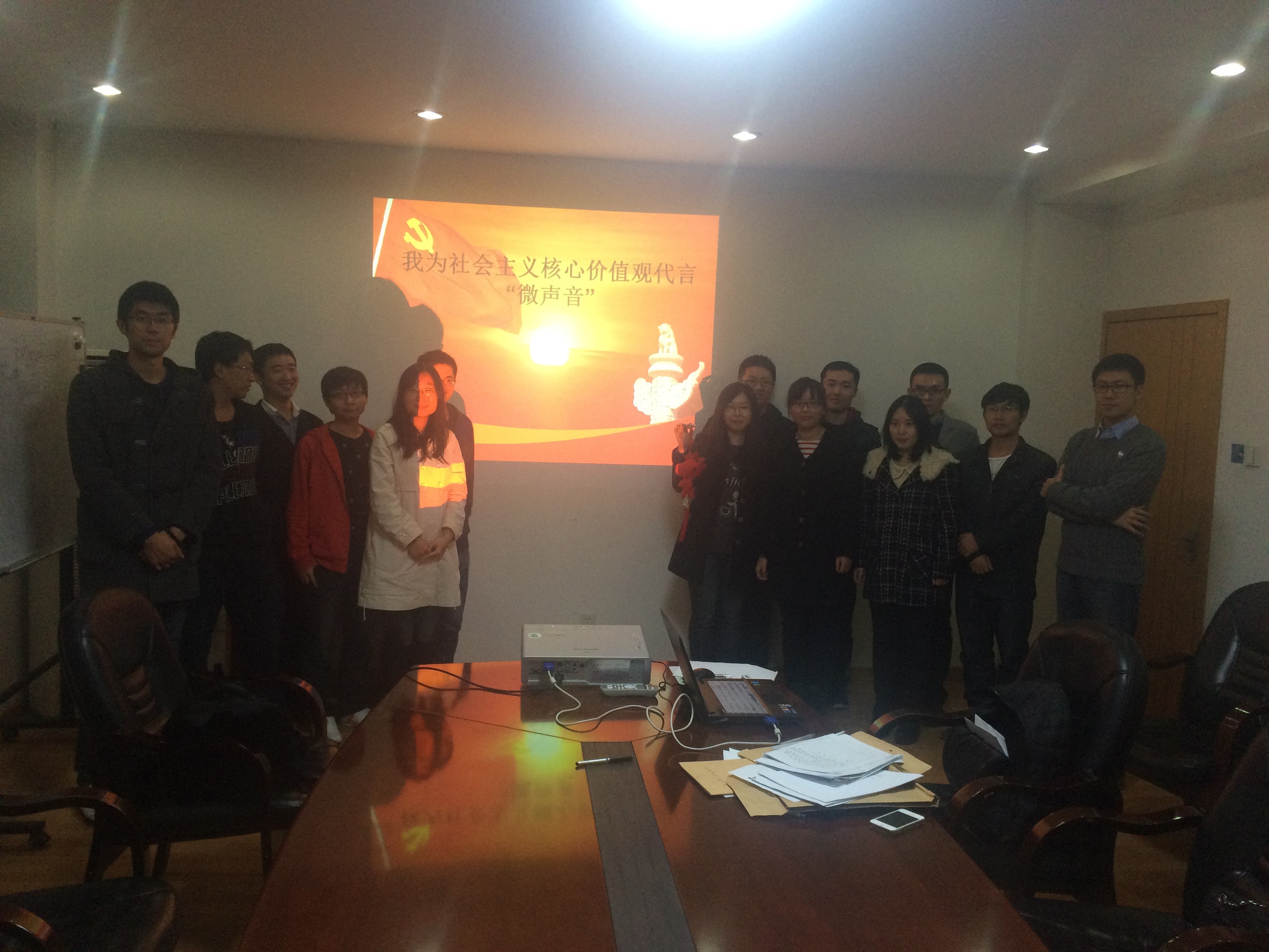2014年11月28日周五晚,电路与系统博士生党支部在超大规模集成电路研究所老生仪楼五楼会议室开展了我为社会主义核心价值观代言“微声音”的成果展示主题活动。党支部20名正式党员,2预备党员参加了此次活动,活动由党支部书记徐银主持召开。